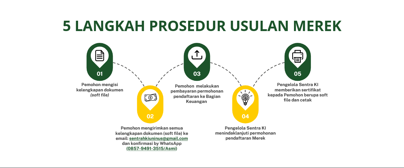 Sentra KI UNINUS membuat ajuan ke bagian keunangan untuk pembayaran biaya usulan Hak merek